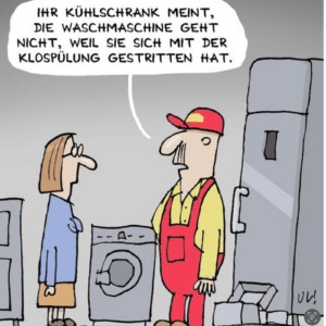 Echt jetzt ?? der Himmel behüte mich vor sensiblen Hausgeräten … ich wusste gar nicht, dass die unter einer Decke stecken oder dass eine Klospülung sich streiten kann. Hört sich bestimmt krass an … gurgel, blubb, röchel, süüüüp!